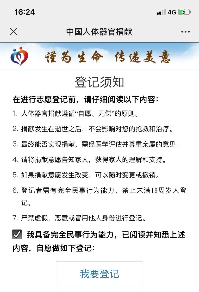 志愿器官捐獻登記是有完全民事行為能力的公民表達身故后器官捐獻意愿的方式,受法律保護。但是器官捐獻時,往往需要考慮到近親屬的意見,所以建議告知家屬你的決定。